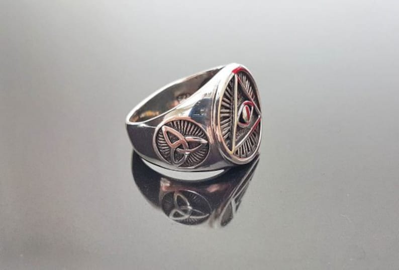 All Seeing Eye Pyramid Sterling Silver 925 Ring Eye of Providence Talisman Amulet Sacred Symbol.